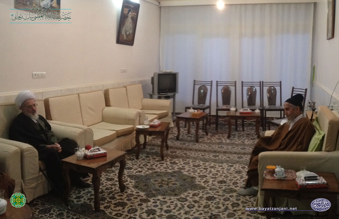 حضرت آیت الله العظمی بیات زنجانی دامت برکاته با حضور در بیت حضرت آیت الله العظمی صانعی دامت برکاته، از معظم له عیادت کرده و برای رفع کسالت و شفای عاجل ایشان دعا کردند.