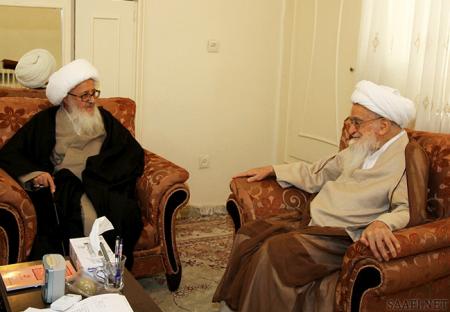 آیتالله وحید خراسانی و آیتالله صافی گلپایگانی صبح امروز در مشهد مقدس با یکدیگر دیدار و گفتگو کردند.
