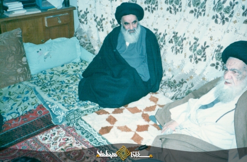 تصویری تاریخی از حضرت آیت الله العظمی خویی و حضرت آیت الله سیستانی که برای نخستین بار به مناسبت بیست و دومین سالگرد رحلت آیت الله العظمی خویی منتشر می کند.