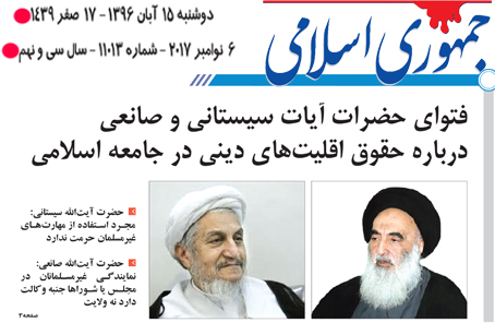 حضرات آیات سیستانی و صانعی به پرسشی در مورد حقوق اقلیتهای دینی در جامعه اسلامی و مشارکت اهل کتاب در امور مسلمانان پاسخ دادند....